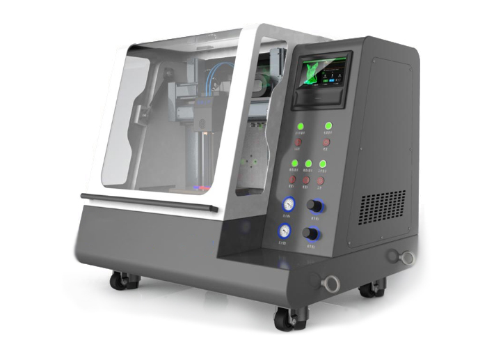 ET-?JD200Pro桌面型雙頭打印設備,采用熔融擠出、直寫打印雙頭設計,可以實現絲材+ 漿料類型、漿料+漿料類型的復合打印成型,如同時打印樹脂漿料和導電漿料, 或者同時打印兩種金屬漿料等。可雙直寫頭復合成型!