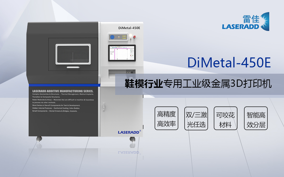 2022年,雷佳經過多年深入鞋模行業應用端與用戶建立互動,分析用戶需求,結合實踐應用,賦能鞋模用戶,提供金屬3D打印鞋底模具全方位解決方案,雷佳最新研發了DiMetal-450E的鞋模行業專用工業級金屬3D打印機。
