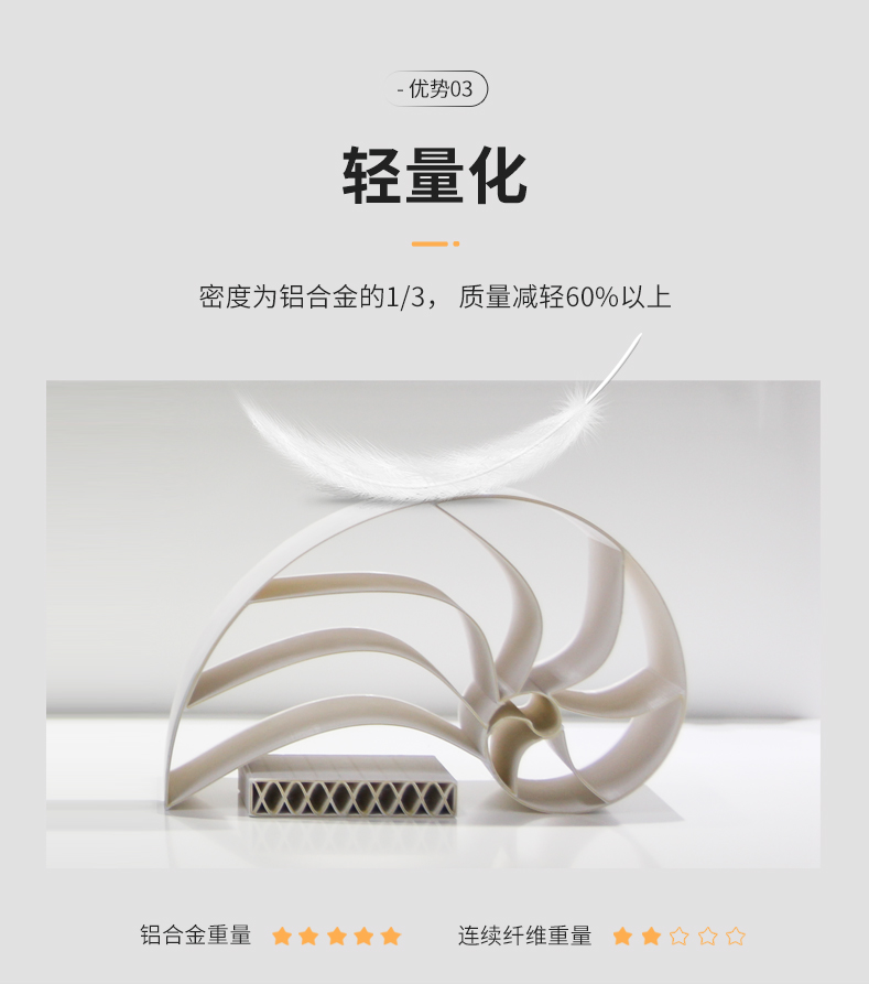 高耐熱、高耐腐蝕:連續(xù)碳纖維3D打印技術(shù)可以使用耐高溫、耐腐蝕等特殊材料,可以滿足高溫、腐蝕等惡劣環(huán)境下的需求。